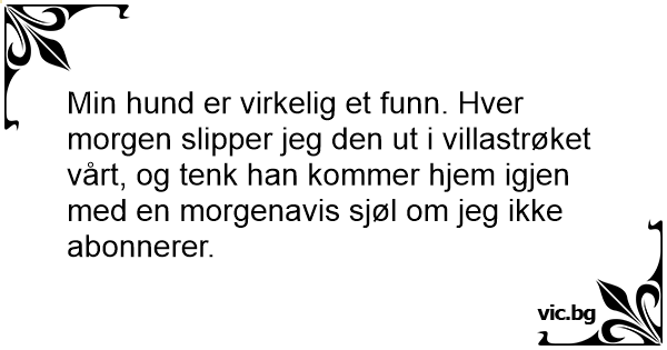 Min hund er virkelig et funn. Hver morgen slipper jeg den ut i villastrøket vårt, og tenk han kommer hjem igjen med en morgenavis sjøl om jeg ikke abonnerer.