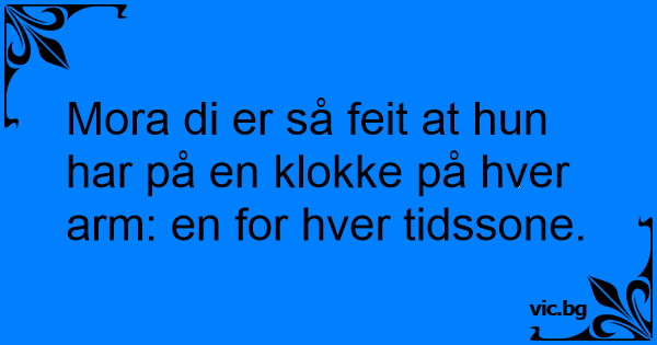 Mora di er så feit at hun har på en klokke på hver arm: en for hver tidssone.