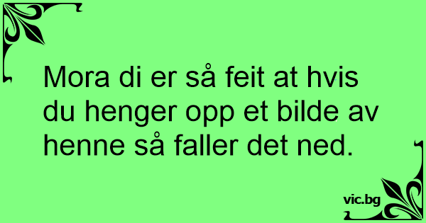 Mora di er så feit at hvis du henger opp et bilde av henne så faller det ned.