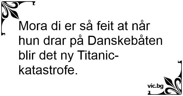 Mora di er så feit at når hun drar på Danskebåten blir det ny Titanic-katastrofe.