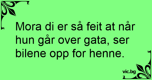 Mora di er så feit at når hun går over gata, ser bilene opp for henne.