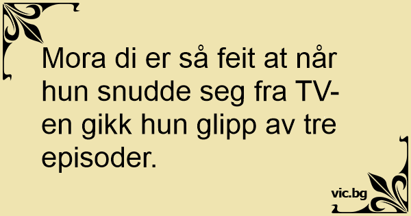 Mora di er så feit at når hun snudde seg fra TV-en gikk hun glipp av tre episoder.
