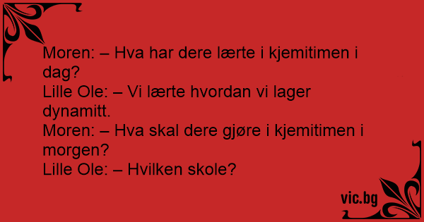 Moren: – Hva har dere lærte i kjemitimen i dag?