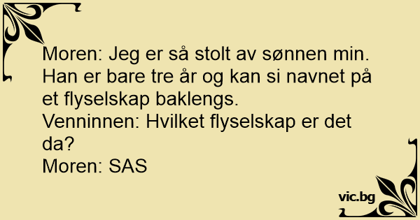 Moren: Jeg er så stolt av sønnen min. Han er bare tre år og kan si navnet på et flyselskap baklengs.