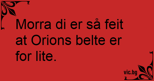 Morra di er så feit at Orions belte er for lite.