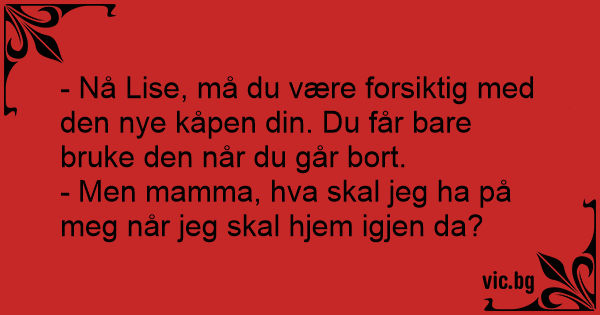 - Nå Lise, må du være forsiktig med den nye kåpen din. Du får bare bruke den når du går bort.
