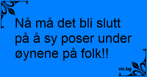 Nå må det bli slutt på å sy poser under øynene på folk!!