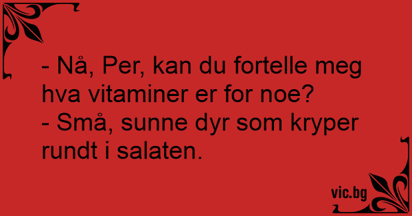 - Nå, Per, kan du fortelle meg hva vitaminer er for noe?