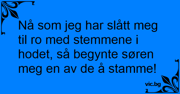 Nå som jeg har slått meg til ro med stemmene i hodet, så begynte søren meg en av de å stamme!