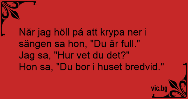 Năr jag höll pả att krypa ner i sängen sa hon, "Du är full."