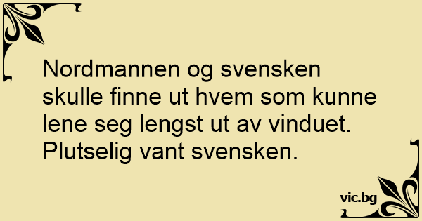Nordmannen og svensken skulle finne ut hvem som kunne lene seg lengst ut av vinduet.