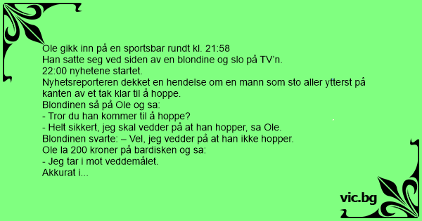 Blondinen svarte: – Vel, jeg vedder på at han ikke hopper.