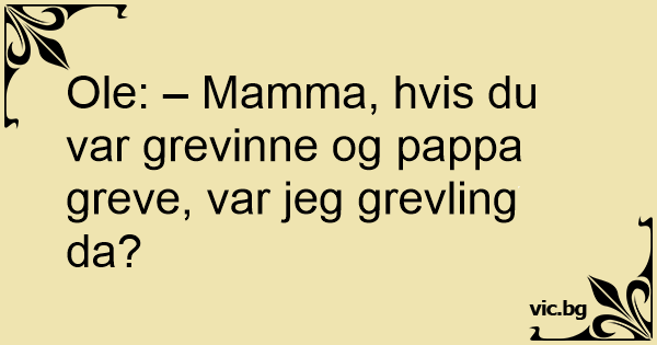 Ole: – Mamma, hvis du var grevinne og pappa greve, var jeg grevling da?