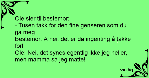 Ole: Nei, det synes egentlig ikke jeg heller, men mamma sa jeg måtte!