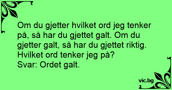 Om du gjetter hvilket ord jeg tenker på, så har du gjettet galt. Om du gjetter galt, så har du gjettet riktig. Hvilket ord tenker jeg på?