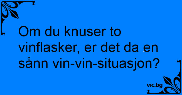 Om du knuser to vinflasker, er det da en sånn vin-vin-situasjon?
