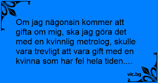 Om jag nägonsin kommer att gifta om mig, ska jag göra det med en kvinnlig metrolog, skulle vara trevligt att vara gift med en kvinna som har fel hela tiden....