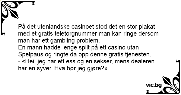 På det utenlandske casinoet stod det en stor plakat med et gratis teletorgnummer man kan ringe dersom man har ett gambling problem.