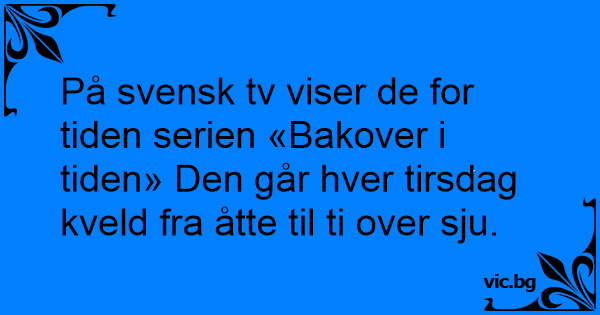 På svensk tv viser de for tiden serien «Bakover i tiden» Den går hver tirsdag kveld fra åtte til ti over sju.