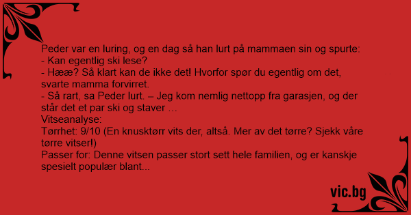 Tørrhet: 9/10 (En knusktørr vits der, altså. Mer av det tørre? Sjekk våre tørre vitser!)