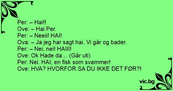 Per: Nei. HAI, en fisk som svømmer!