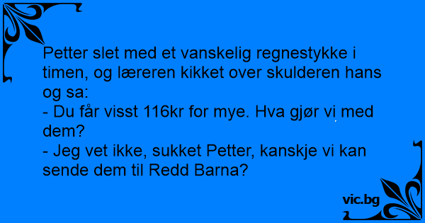 Petter slет med et vanskelig regnestykke i timen, og læreren kikket over skulderen hans og sa:
