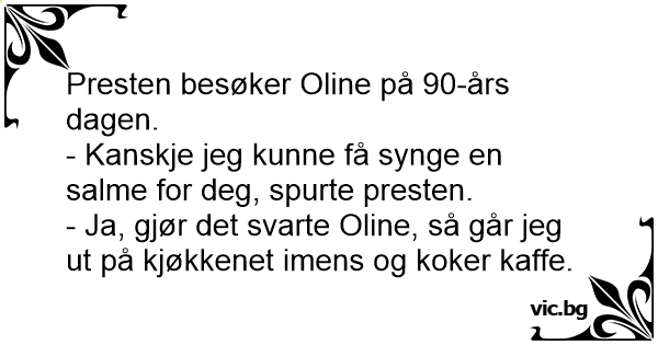 - Ja, gjør det svarte Oline, så går jeg ut på kjøkkenet imens og koker kaffe.