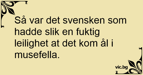 Så var det svensken som hadde slik en fuktig leilighet at det kom ål i musefella.