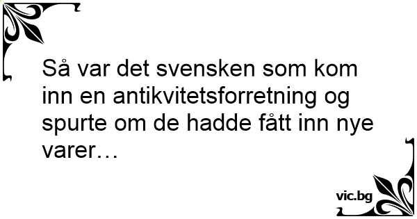Så var det svensken som kom inn en antikvitetsforretning og spurte om de hadde fått inn nye varer…