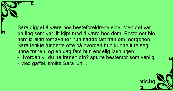 - Hvordan vil du ha tranen din? spurte bestemor som vanlig.