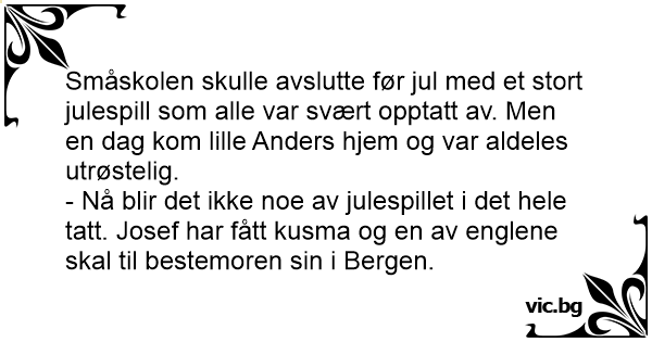 Småskolen skulle avslutte før jul med et stort julespill som alle var svært opptatt av. Men en dag kom lille Anders hjem og var aldeles utrøstelig.