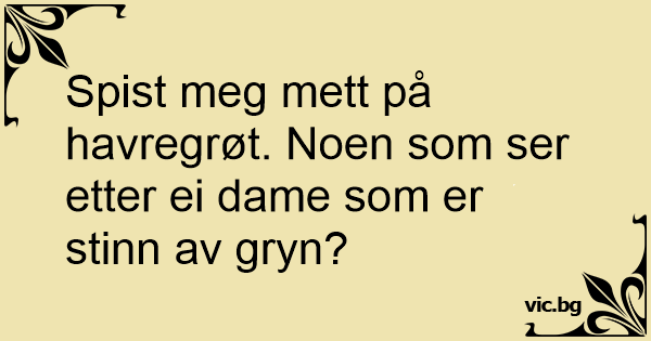 Spist meg mett på havregrøt. Noen som ser etter ei dame som er stinn av gryn?