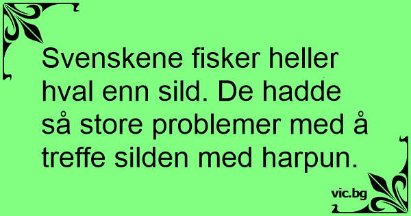 Svenskene fisker heller hval enn sild. De hadde så store problemer med å treffe silden med harpun.