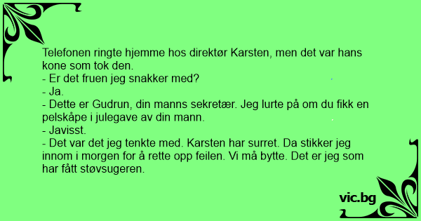 Telefonen ringte hjemme hos direktør Karsten, men det var hans kone som tok den.