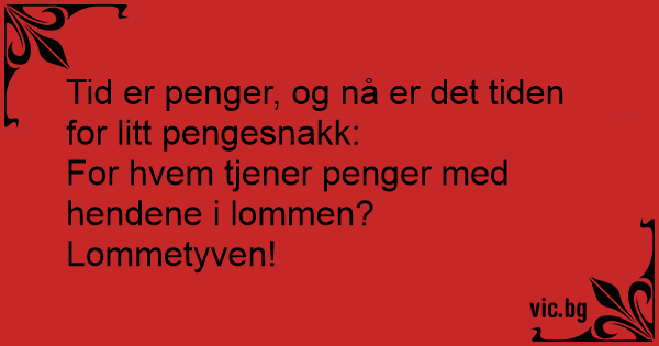 Tid er penger, og nå er det tiden for litt pengesnakk: