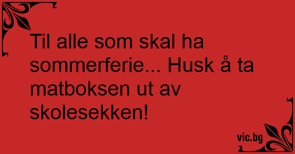 Til alle som skal ha sommerferie... Husk å ta matboksen ut av skolesekken!