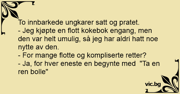 - Jeg kjøpte en flott kokebok engang, men den var helt umulig, så jeg har aldri hatt noe nytte av den.