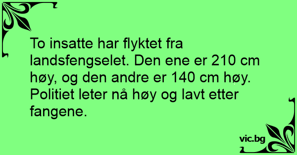 To insatte har flyktet fra landsfengselet. Den ene er 210 cm høy, og den andre er 140 cm høy.