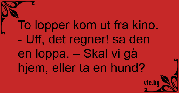 - Uff, det regner! sa den en loppa. – Skal vi gå hjem, eller ta en hund?