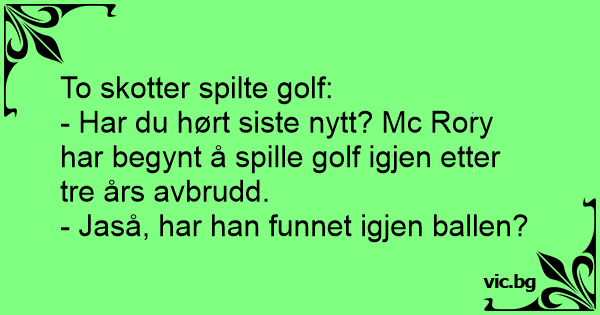 - Har du hørt siste nytt? Mc Rory har begynt å spille golf igjen etter tre års avbrudd.
