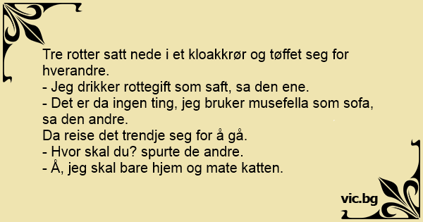 - Det er da ingen ting, jeg bruker musefella som sofa, sa den andre.
