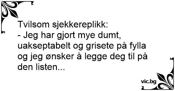 - Jeg har gjort mye dumt, uakseptabelt og grisete på fylla og jeg ønsker å legge deg til på den listen...