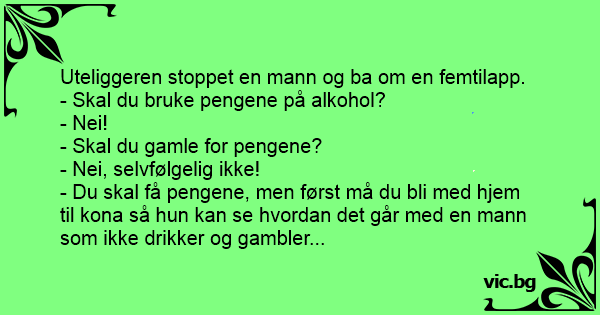 - Du skal få pengene, men først må du bli med hjem til kona så hun kan se hvordan det går med en mann som ikke drikker og gambler...
