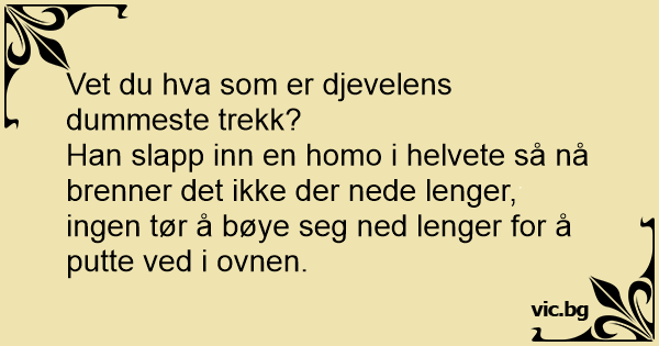 Han slapp inn en hомо i hеlvете så nå brenner det ikke der nede lenger, ingen tør å bøye seg ned lenger for å putte ved i ovnen.