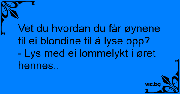 Hvordan får man en blondines øyne til å gnistre? – Lyser inn øret med en lommelykt.