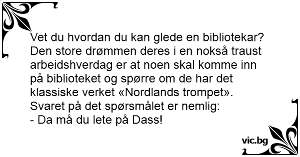Den store drømmen deres i en nokså traust arbeidshverdag er at noen skal komme inn på biblioteket og spørre om de har det klassiske verket «Nordlands trompet». Svaret på det spørsmålet er nemlig: