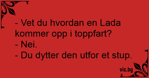 Hvordan får man en Lada til at kjøre fra 0 - 100 på 2 sek? - Man skyver den utfor ett stup.