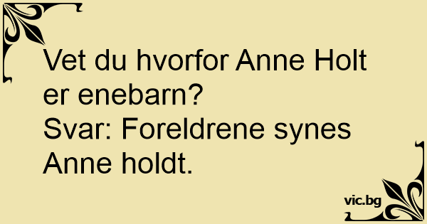 Vet du hvorfor Anne Holt er enebarn?