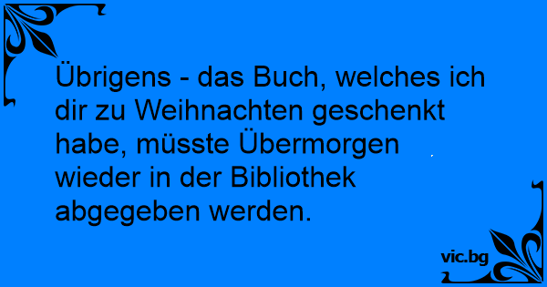 Übrigens - das Buch, welches ich dir zu Weihnachten geschenkt habe, müsste Übermorgen wieder in der Bibliothek abgegeben werden.