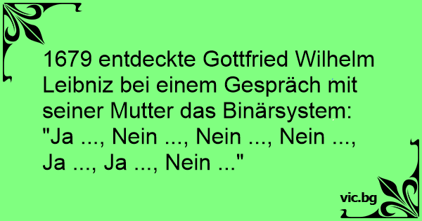 1679 entdeckte Gottfried Wilhelm Leibniz bei einem Gespräch mit seiner Mutter das Binärsystem: